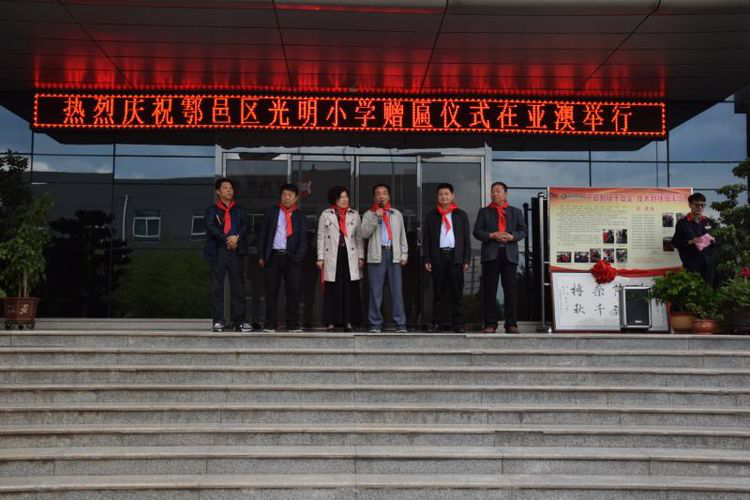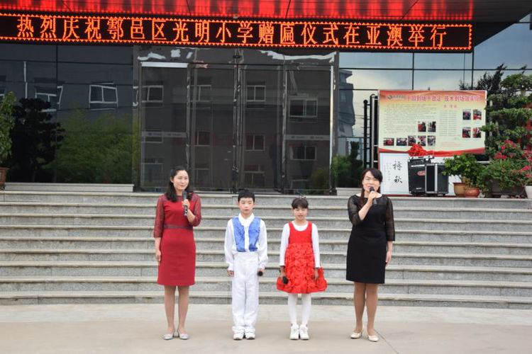 2018年4月28日上午10時,西安市鄠邑區(qū)光明小學為亞澳農機總部贈匾儀式順利舉行,鄠邑區(qū)政府辦副主任、機關事務管理局局長滑益平,區(qū)經貿局副局長趙曉利,區(qū)中小企業(yè)服務中心趙建威,區(qū)光明小學校長馬文博、副校長張忠偉、王冰榮及老師、同學們,以及亞澳農機董事長史可器、總經理史森強、副總經理史炳直等亞澳全體管理干部及黨員、工會委員、職工代表等參加活動。局副局長趙曉