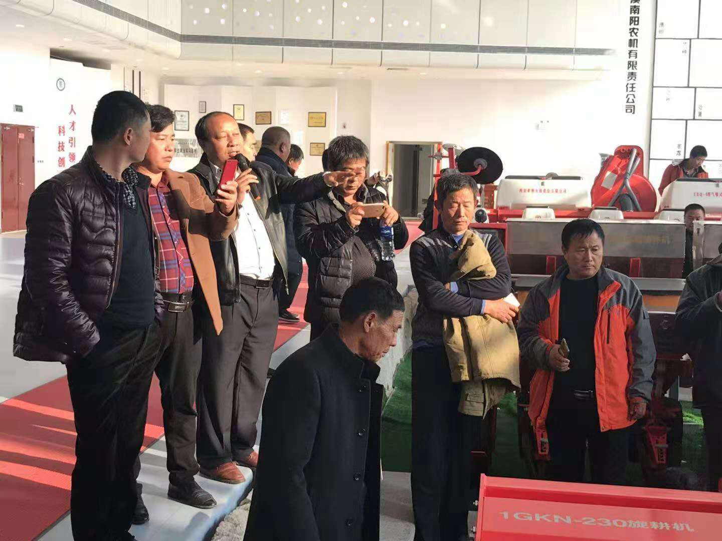 亞澳公司總經理助理郭靖和銷售部經理王紅衛(wèi)負責接待,一行70多人來到大廳,首先郭總給大家介紹了亞澳農機的企業(yè)文化及發(fā)展歷程,并介紹了展廳里所展示的代表性機具。