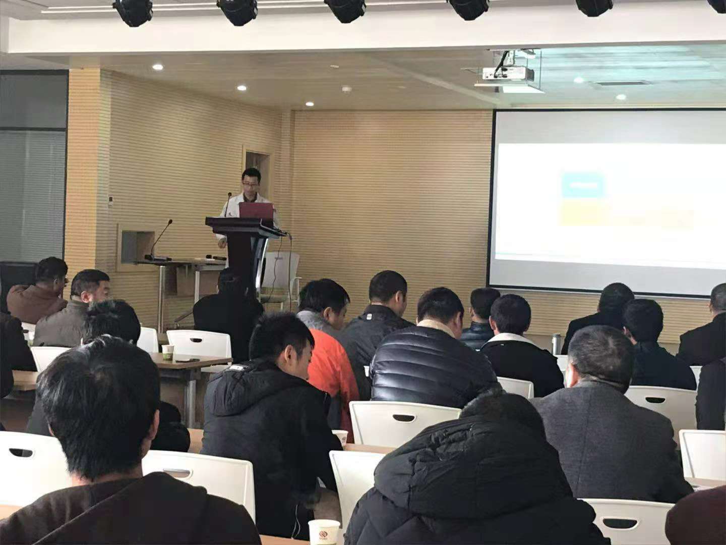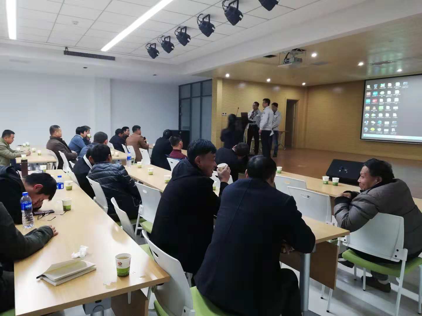 隨后一行人來到二樓多功能廳,銷售王經理詳細給大家介紹了亞澳農機的幾大系列產品:旋耕機、小麥花生精量播種施肥機、深松機及聯(lián)合耕整機。把這些機具的配套馬力、功能作用及產品特點都作了詳細的介紹。