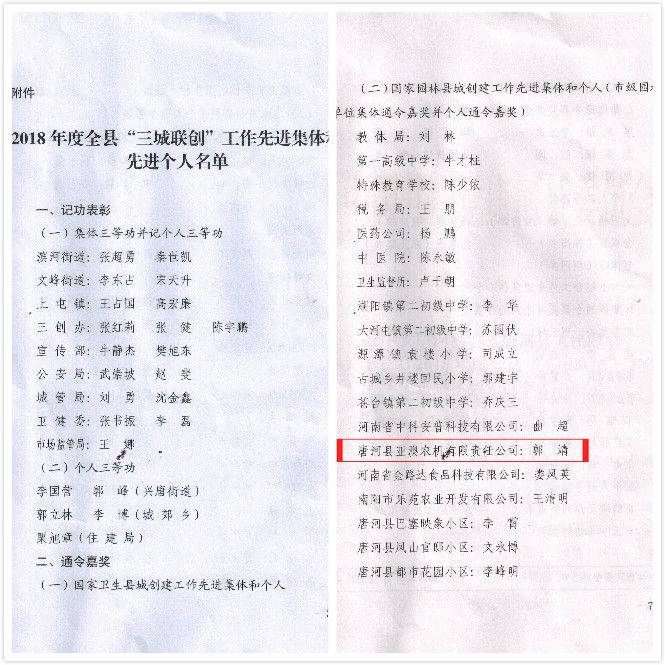 4月12日,唐河縣召開2018年度“三城聯(lián)創(chuàng)”總結(jié)大會。大會宣讀了表彰先進(jìn)集體及先進(jìn)個人的決定。亞澳農(nóng)機(jī)獲得2018年度國家園林縣城創(chuàng)建工作先進(jìn)集體。