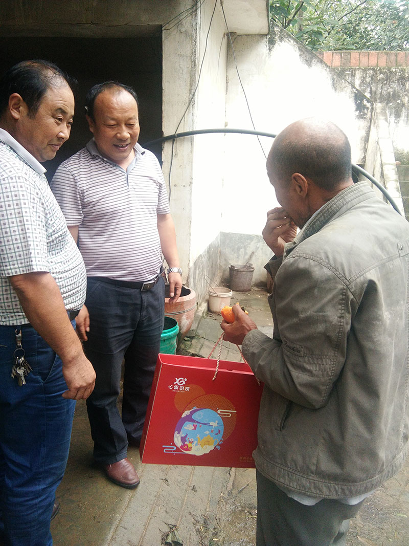 淫雨霏霏,在國慶、中秋雙節(jié)來臨之前,2017年9月25日下午,亞澳南陽農(nóng)機(jī)有限公司總經(jīng)理助理郭靖懷著滿滿的熱情與關(guān)懷,帶著月餅禮盒,再次來到大河屯鎮(zhèn)申沖村開展扶貧慰問工作。