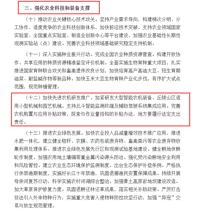 2023年中央一號文件2月13日正式發(fā)布。文件提出,要立足國情農(nóng)情,體現(xiàn)中國特色,建設(shè)供給保障強、科技裝備強、經(jīng)營體系強、產(chǎn)業(yè)韌性強、競爭能力強的農(nóng)業(yè)強國。