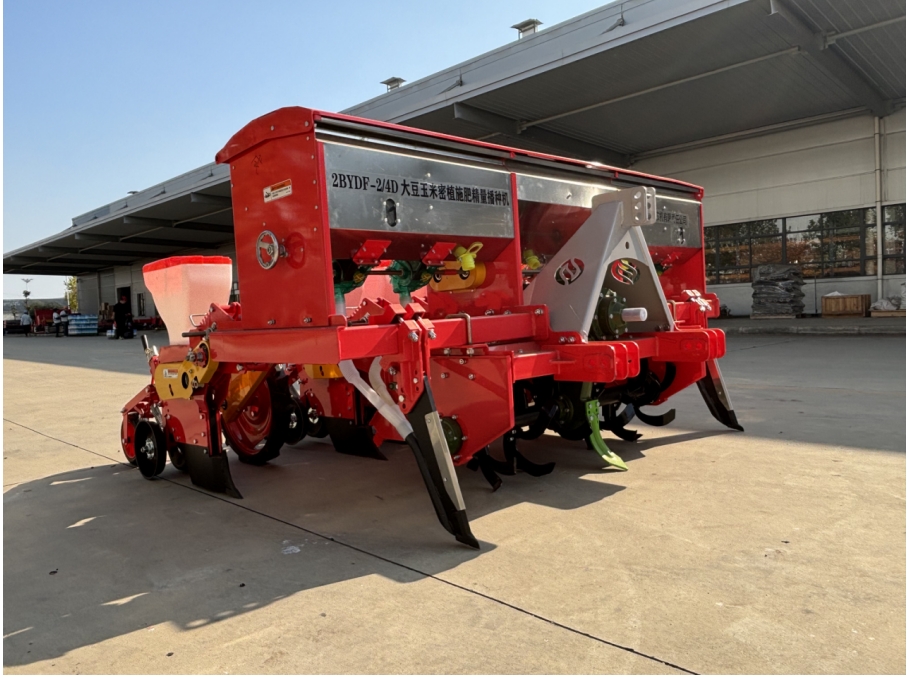 大豆玉米密植施肥精量播種機,一次可完成旋耕、施肥、播種、覆土、鎮(zhèn)壓等工序。采取“2+4”(大豆4行玉米2行)種植模式,發(fā)揮大豆玉米帶狀復(fù)合種植,真正做到“一田多收、穩(wěn)糧增收。