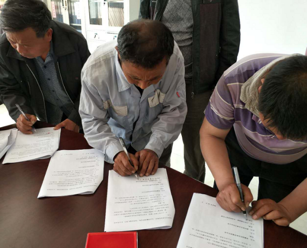 在縣百企辦逯亞森主任、大河屯鎮(zhèn)黨委張珀副書記、申沖村申慶振主任的見(jiàn)證下,各方與公司共同簽署了相關(guān)協(xié)議,正式將本批物資轉(zhuǎn)交給了申沖村委。