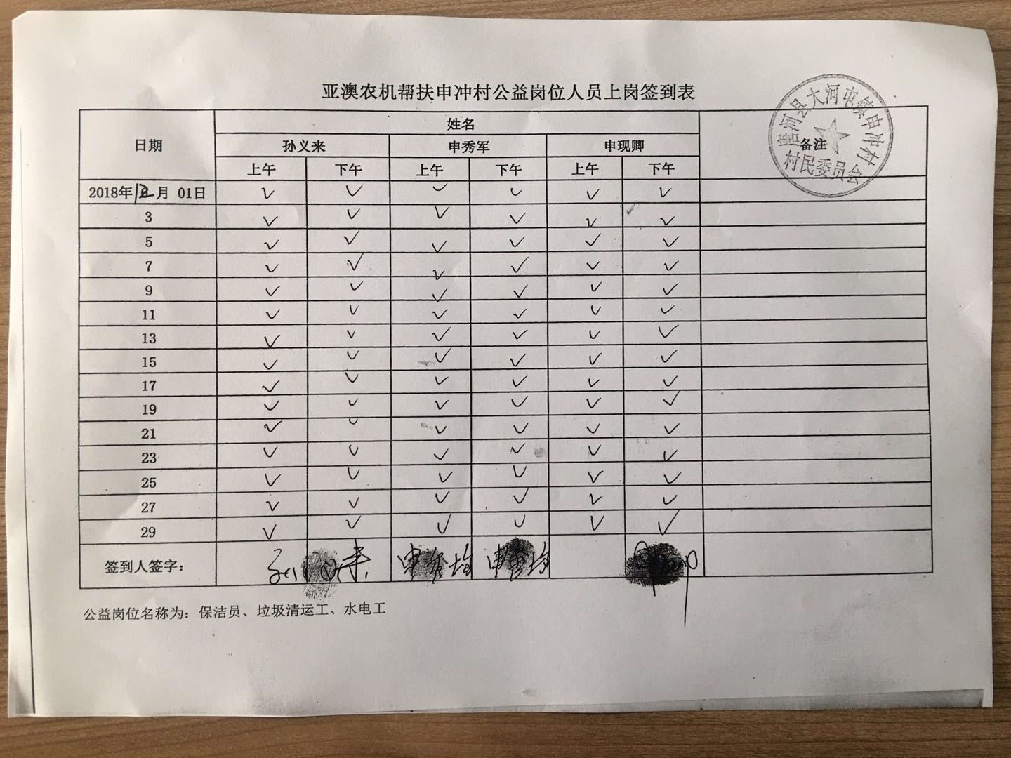 除此之外,我公司聯(lián)合村委會(huì)照顧一些特別貧困但有行動(dòng)能力的老人為村部垃圾清運(yùn)、水電維修、村落清潔等,并為此購(gòu)買(mǎi)公益崗位,每月定期給這些公益崗位發(fā)放工資,以確保他們的正常生活。