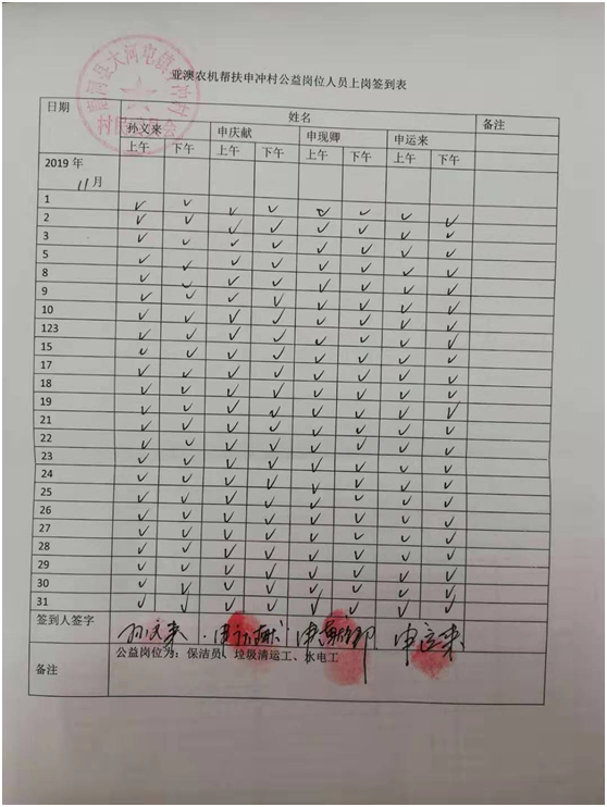 除此之外,我公司聯(lián)合村委會(huì)照顧一些特別貧困但有行動(dòng)能力的老人為村部垃圾清運(yùn)、水電維修、村落清潔等,并為此購(gòu)買公益崗位,每月定期給這些公益崗位發(fā)放工資500元/個(gè)月,以確保他們的正常生活。這一決定從2018年5月至今已經(jīng)實(shí)行了一年半時(shí)間,累計(jì)發(fā)放公益崗位工資3.1萬元。