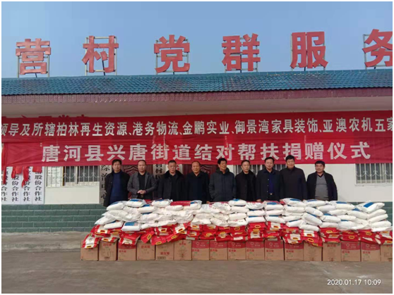 捐贈儀式上產(chǎn)業(yè)集聚區(qū)黨委書記劉清文、主任李國營代表興唐街道黨委、政府向五家企業(yè)的義舉表示感謝。他指出,以亞澳農(nóng)機為首的這五家公司,在完成自身企業(yè)負責包片貧困村脫貧的基礎(chǔ)上,還能再拿出現(xiàn)金3000元捐資扶貧,將自己的社會責任意識,由助力脫貧攻堅,走向現(xiàn)在回饋社會。代表著我縣企業(yè)經(jīng)營由起步走向成熟。他希望廣大困難群眾正確面對暫時的困難,樹立戰(zhàn)勝貧困、走出困境的信心和勇氣,發(fā)揚自力更生、艱苦奮斗的精神,不等不靠,在黨委、政府和社會各界的支持和幫助下,以自身的努力和實干來化解生產(chǎn)、生活中的各種困難,為構(gòu)建美麗和諧的新唐河作出自己的貢獻。