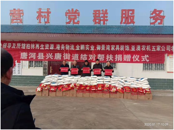 元月17日上午,張店鎮(zhèn)王營村部廣場人頭攢動,捐贈物資整齊擺放,這是興唐街道結(jié)對幫扶扶貧物資捐贈活動現(xiàn)場。為扎實推進“精準扶貧”工作,確保扶貧工作取得實效,產(chǎn)業(yè)集聚區(qū)興唐街道和轄區(qū)港務(wù)物流、亞澳農(nóng)機、金鵬實業(yè)等五家愛心企業(yè)聯(lián)合舉辦了此次活動。