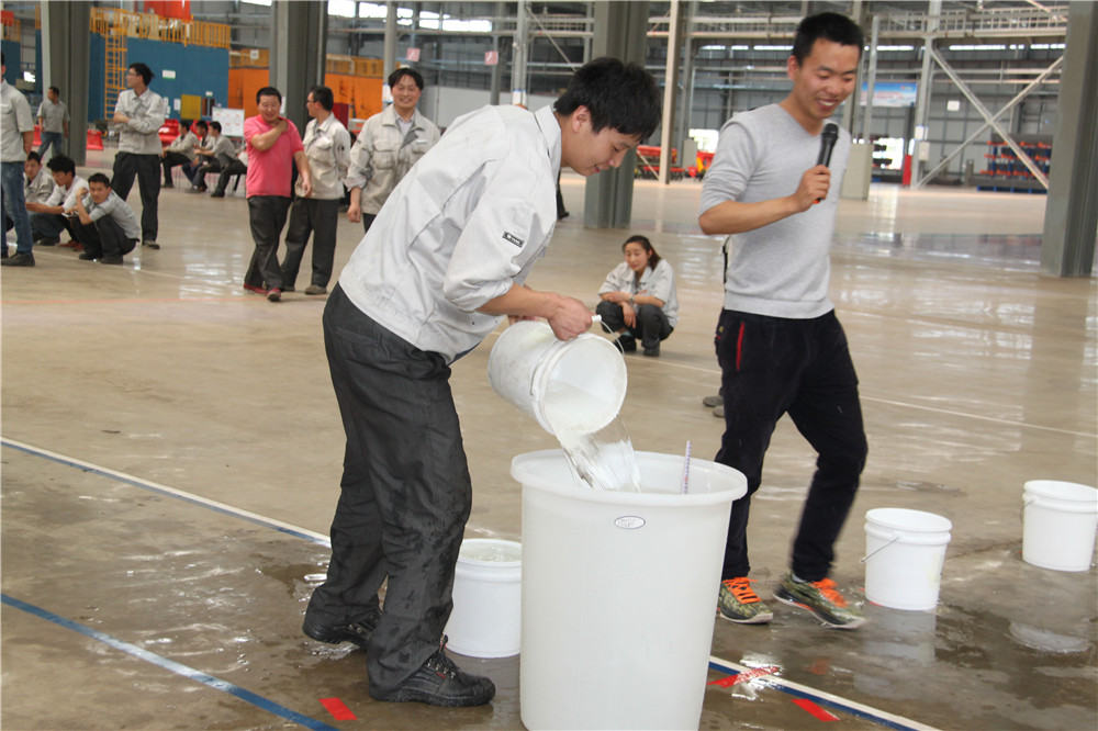 下午13:30在運(yùn)動場出現(xiàn)了擺放有序的水桶,這是我們的第二項活動:精益運(yùn)輸大接力,取水點(diǎn)的距離分別大于等于10米,每個桶分別裝滿10L水,每組隊員是五個人,要在120秒內(nèi)完成大桶水量的收集,超過120秒的隊員淘汰出局,在規(guī)定的時間內(nèi),水量收集多者獲勝,抽簽決定出場順序,這項活動是讓員工明白精益化生產(chǎn)體系的精髓所在之處;減少過程浪費(fèi),實(shí)現(xiàn)低成本的快速交付,滿足客戶的同時,做到細(xì)節(jié)控制,提升產(chǎn)品使用價值,提升公司盈利空間。比賽開始了只見隊員雙手提起20L的水往下一站的隊友那里送,中間會有灑水會很累,但是每個人都為了自己隊伍的榮譽(yù)拼盡全力向終點(diǎn)奔去,旁邊的隊友為他們加油、吶喊,最終自焊獲得第一名。